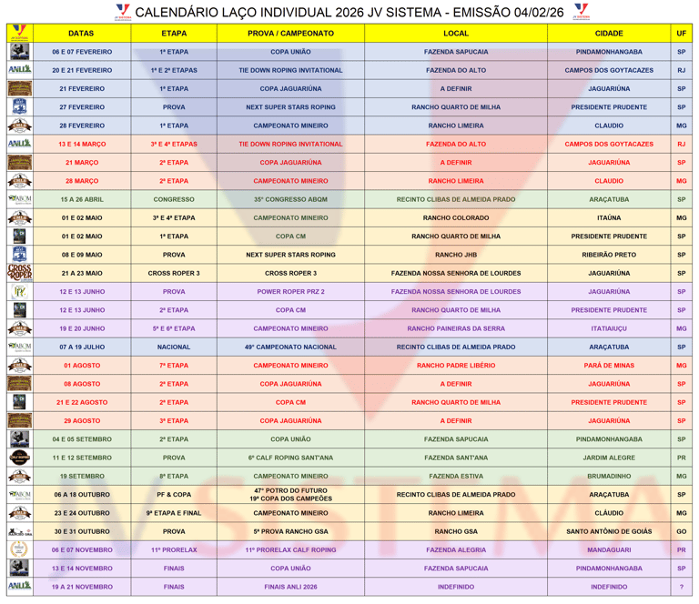 CALENDARIO JV 2026
